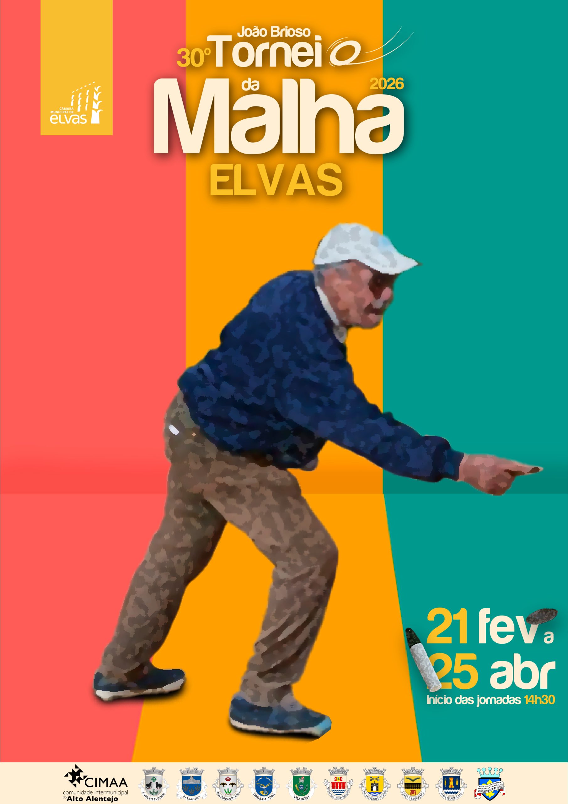 O 30º Torneio da Malha do Concelho de Elvas “João Brioso” vai decorrer ao longo de dez jornadas, entre 21 de fevereiro e 25 de abril, numa organização da Câmara Municipal de Elvas e Associação Desportiva, Recreativa e Cultural da Juventude de São Vicente e Ventosa, com o apoio das Juntas de Freguesia do Concelho e Comunidade Intermunicipal do Alto Alentejo.
